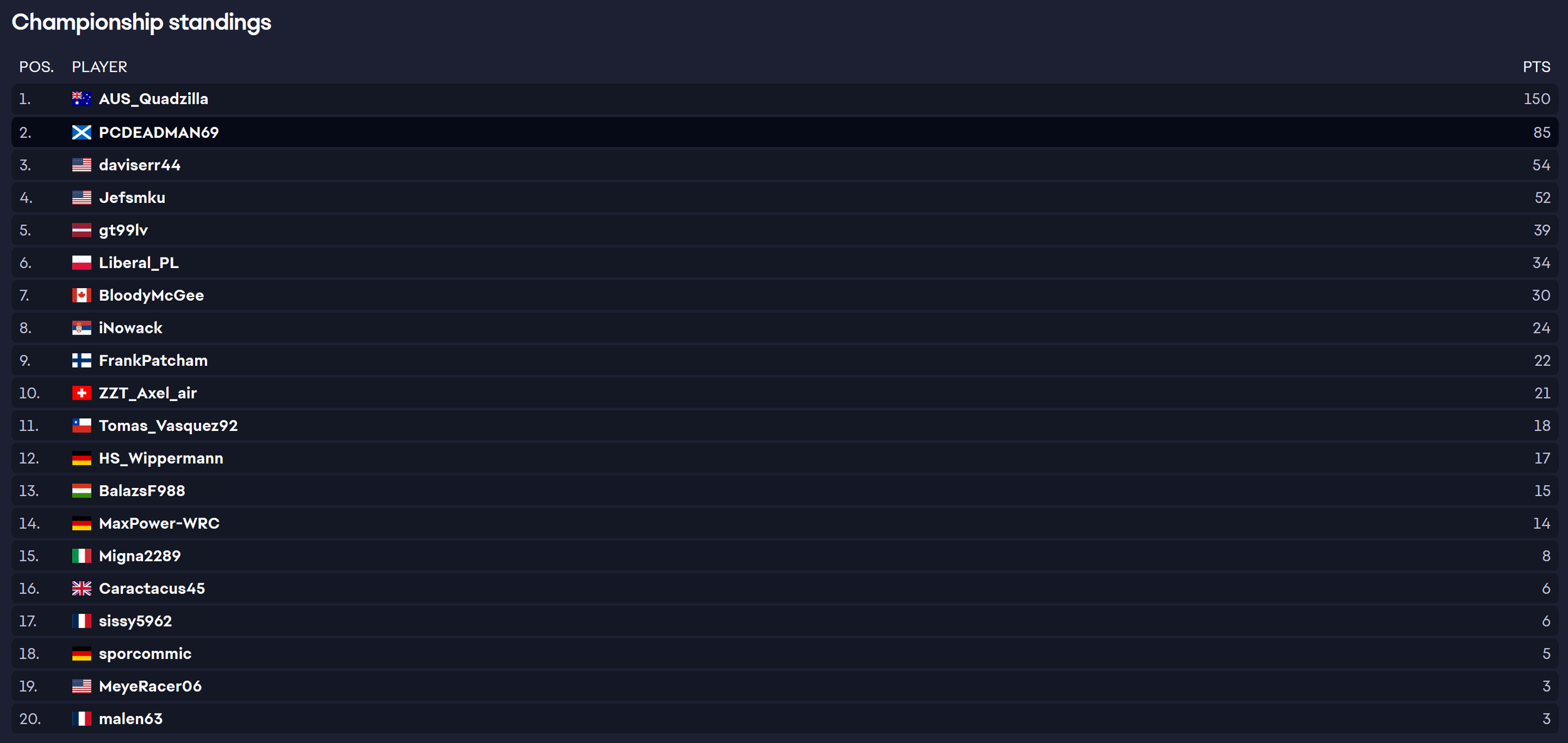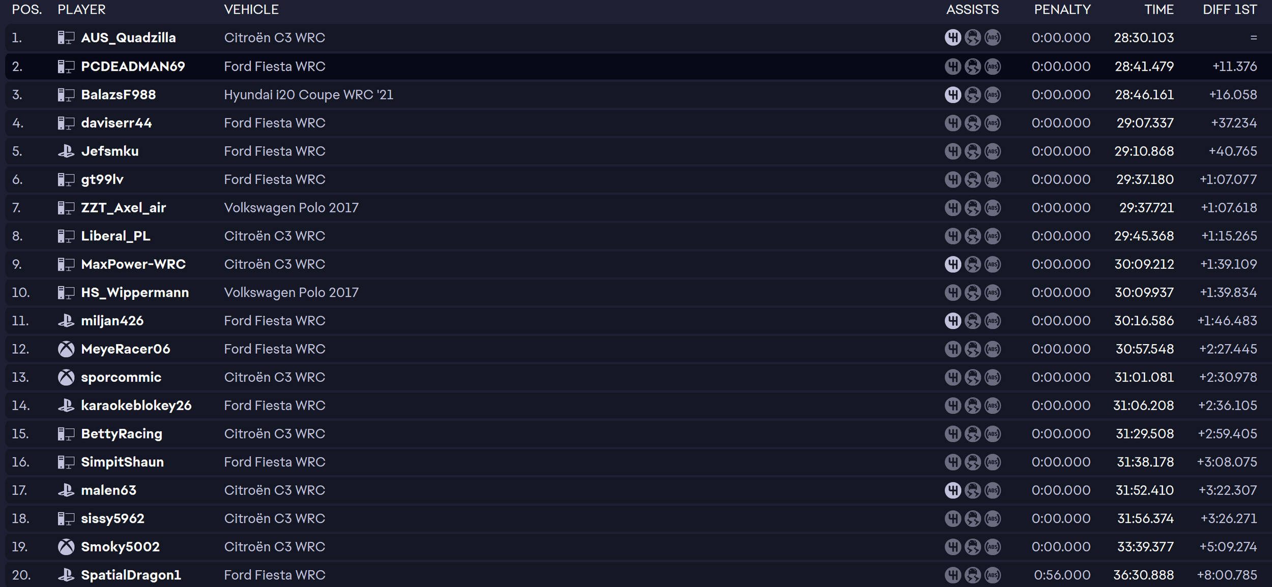Jan 23rd Feb 27th Jan 30th Mar 6th Feb 6th Mar 13th The Simpit Rally League starts 23 January 2026 Feb 13th Mar 20th Feb 20th Mar 27th RALLY STAGE RESULTS RALLY STANDINGS Live Streams